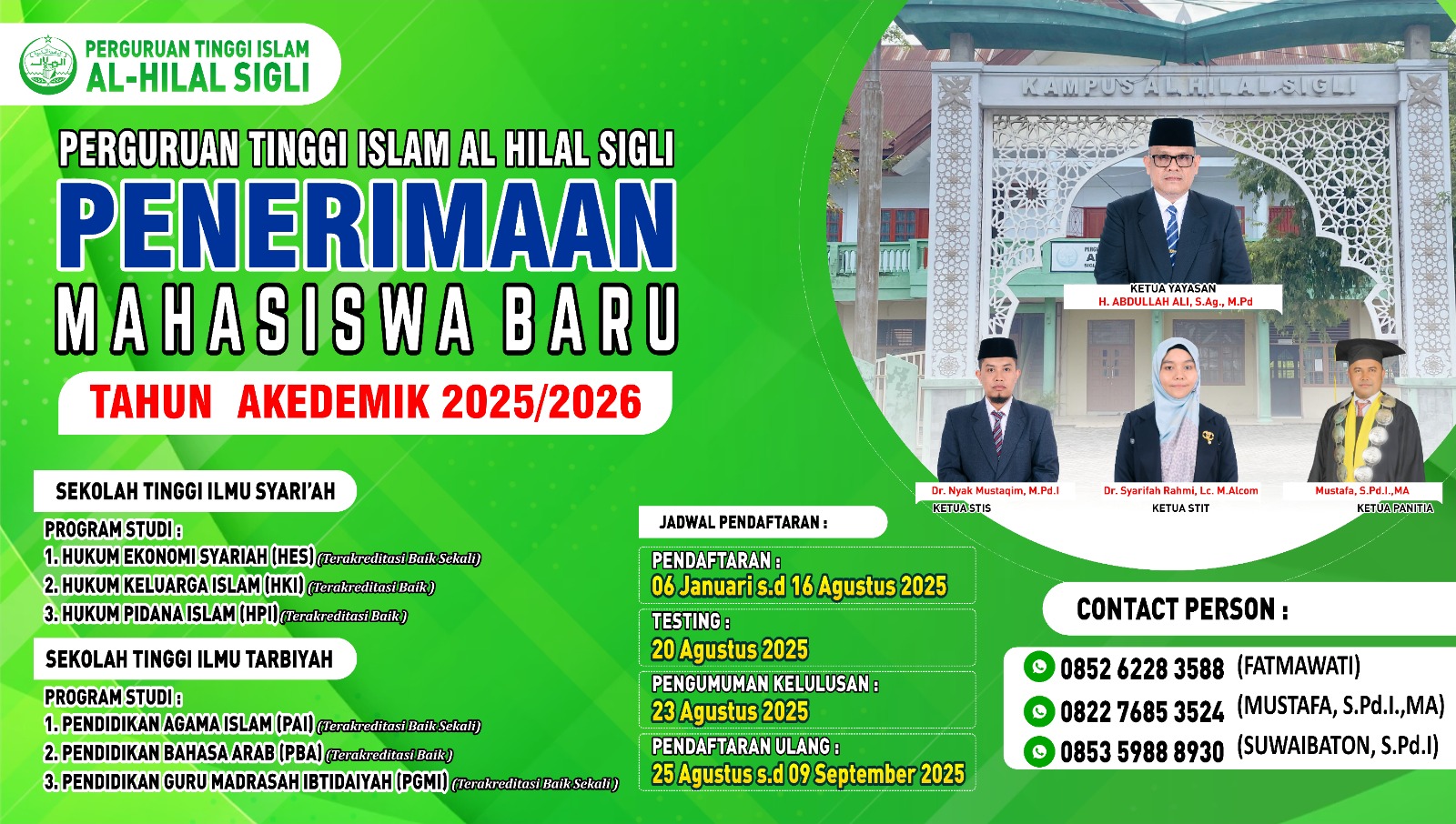 Telah dibuka Pendaftaran Penerimaan Mahasiswa Baru Perguruan Tinggi Islam (PTI) Al-Hilal Sigli dengan Jurusan dan Prodi pilihan